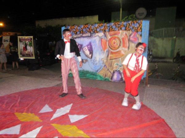 A partir daí o que se viu foi uma platéia feliz e sorridente com o espetáculo proporcionado pelos atores e personagens-palhaços Pinguelão, Pipiu e Tramela (do Circo KOs de Fortaleza). Foi sem sombra de dúvidas um momento inesquecível, principalmente pra gurizada que pode acompanhar um show de palhaçaria clássica promovido pelo Projeto Sesc de Teatro de Rua. O Sesc Juazeiro do Norte esteve representado pela técnica François Alcântara e demais representantes..